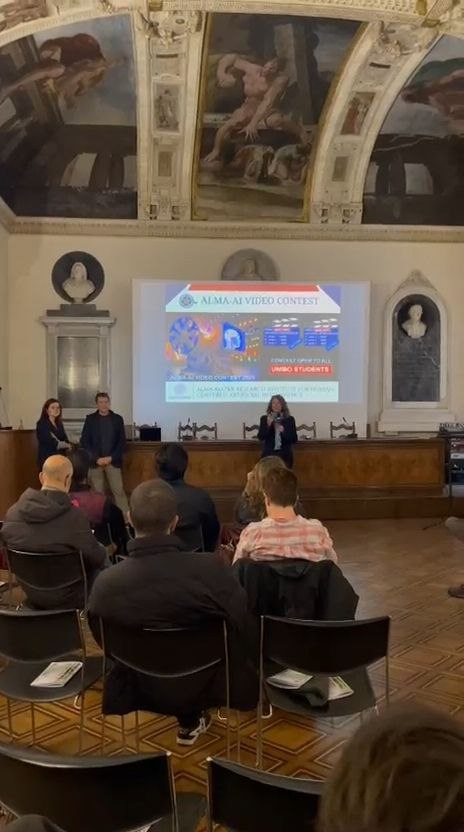 Foto 2025 Premiazioni e Proiezioni Sala di Ulisse - Palazzo Poggi - Università di Bologna Workshop AI Video - Fantomatica.ai Facoltà di Ingegneria - DISI - Università di Bologna